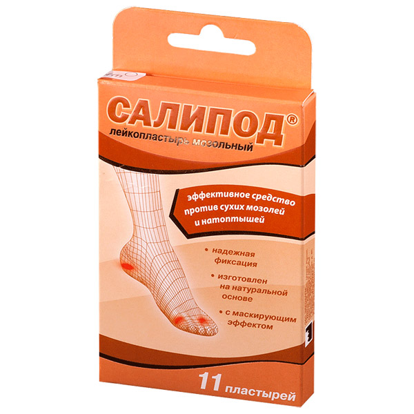 Предназначен для использования в качестве кератолитическогосредства. Эффективное средство против сухих мозолей. Надежнаяфиксация. Натуральная основа. Маскирующий эффект. Активное вещество— салициловая кислота.