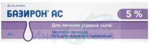 ФармакокинетикаПроникновение бензоила пероксида через кожу низко. Основная часть бензоила пероксида превращается в бензойную кислоту, которая после абсорбции попадает в системный кровоток и быстро выводится почками. Отсутствует кумуляция в тканях. Накожное применение Базирона® АС в терапевтических дозах не приводит к побочным эффектам системного действия.