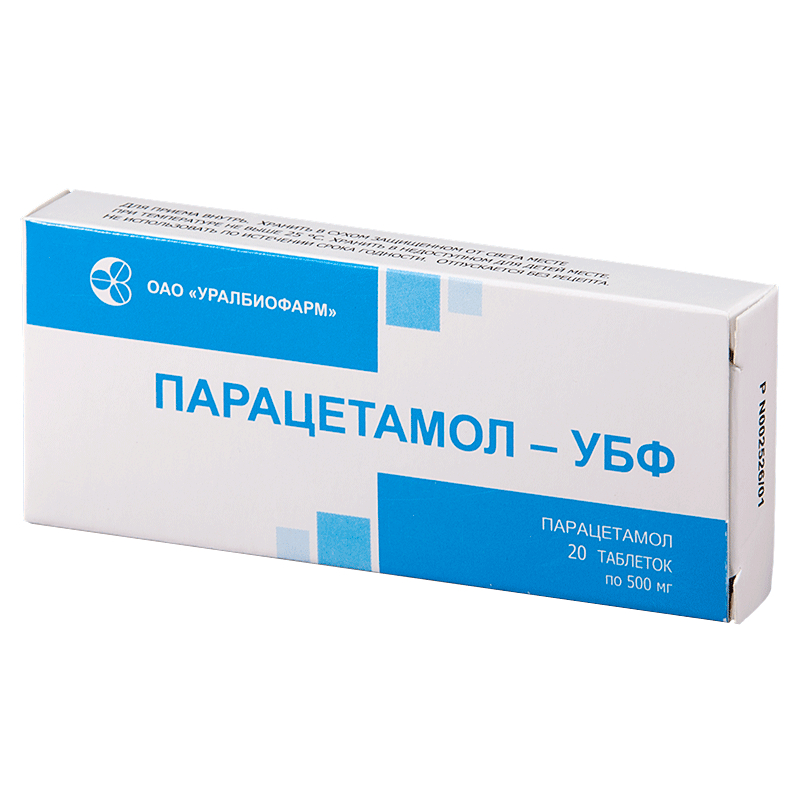 Отпускается по рецепту Нет Производитель Уралбиофарм ОАО Страна производителя Россия Действующее вещество Парацетамол Форма выпуска таблетки Дозировка 500 мг Общее количество в упаковке 20 Условия хранения В сухом, защищенном от света месте, при температуре не выше 25 °C Срок годности 3 года -