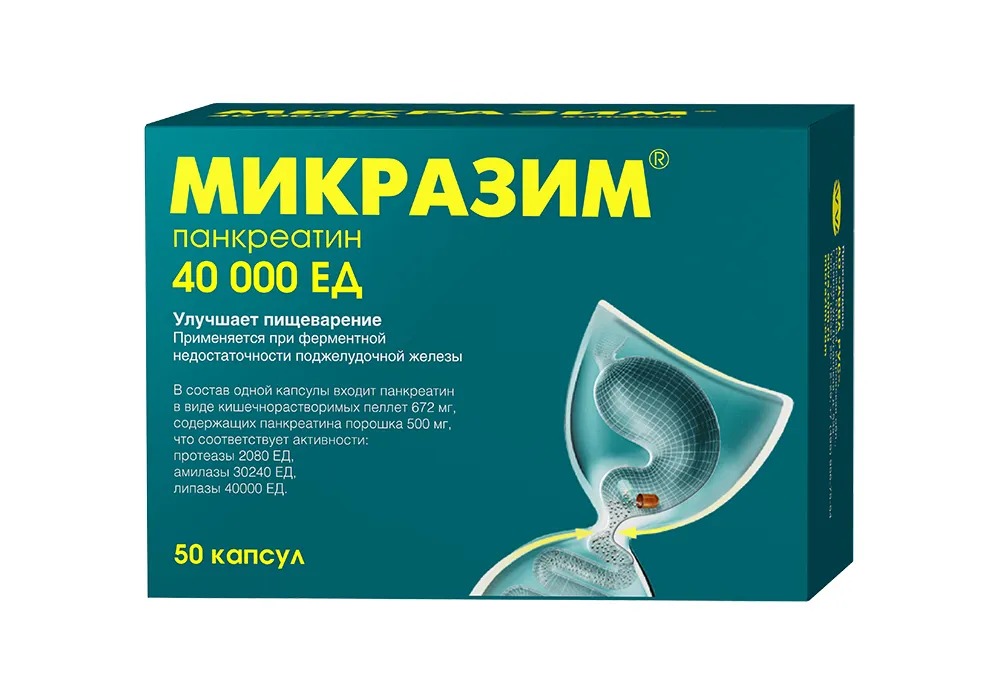 После приема препарата желатиновая капсула под действием желудочного сока растворяется в желудке и микрогранулы панкреатина, устойчивые в кислой среде желудка, вместе с желудочным содержимым попадают в двенадцатиперстную кишку, а затем в тонкий кишечник, где происходит высвобождение пищеварительных ферментов и обеспечивается энзиматическое переваривание пищи. Панкреатин в форме микрогранул обеспечивает более быстрое перемешивание пищеварительных ферментов с кишечным содержимым и их равномерное распределение, что обуславливает более высокую переваривающую активность.