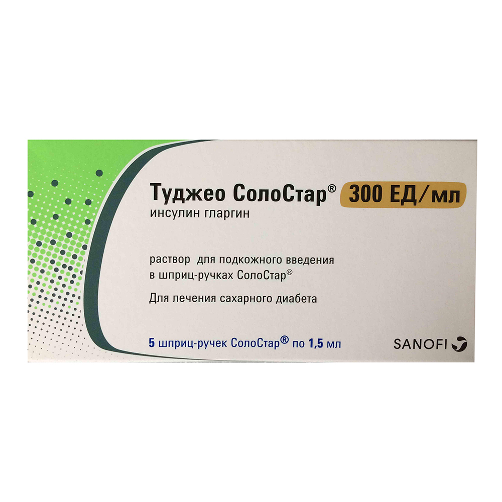 Шприц-ручка Туджео СолоСтар® содержит инсулин гларгин в концентрации 300 ЕД/мл.
