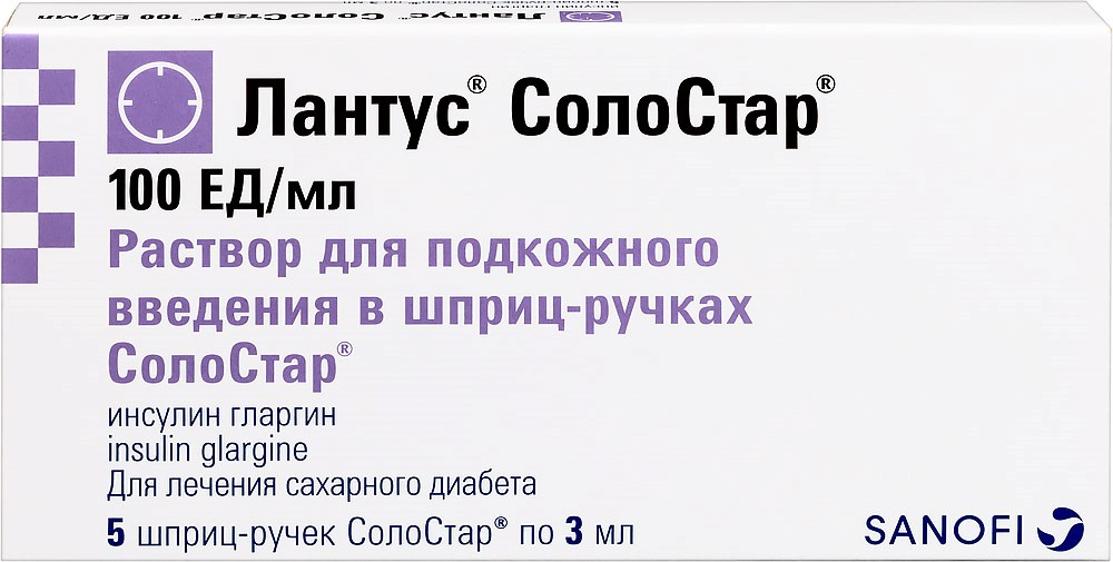 Отпускается по рецепту Да Производитель Санофи Восток АО Страна производителя Россия Действующее вещество Инсулин Гларгин -