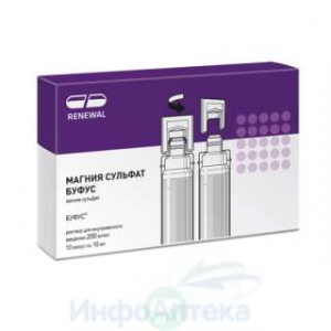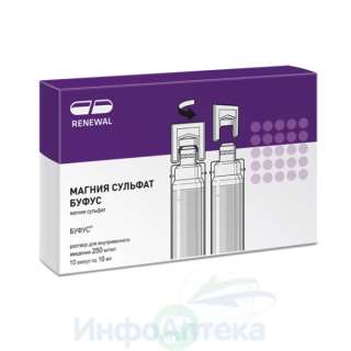 Отпускается по рецепту Да Производитель Обновление ПФК АО Страна производителя Россия Действующее вещество Магния Сульфат Форма выпуска раствор для внутривенного введения Дозировка 250 мг/мл Общее количество в упаковке 10 Условия хранения При температуре не выше 25 °C, в оригинальной упаковке Срок годности 3 года -