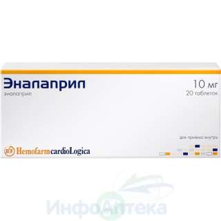 Отпускается по рецепту Да Производитель Хемофарм ООО Страна производителя Россия Действующее вещество Эналаприл Форма выпуска таблетки Дозировка 10 мг Общее количество в упаковке 20 Условия хранения В сухом месте, при температуре 15–25 °C Срок годности 3 года -