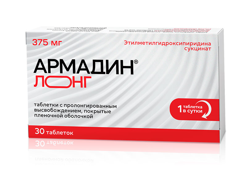 Этилметилгидроксипиридина сукцинат, входящий в состав препарата Армадин® лонг, является ингибитором свободнорадикальных процессов, мембранопротектором, обладающим антигипоксическим, стресс-протекторным, ноотропным, противоэпилепгическим и анксиолитическим действием. Относится к классу 3-оксипиридинов.