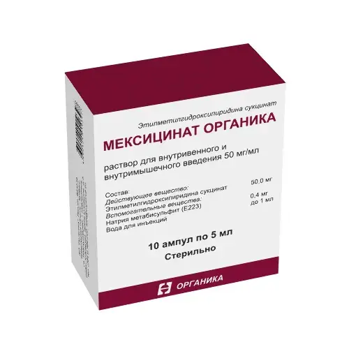 Отпускается по рецепту Да Производитель Органика АО Страна производителя Россия Действующее вещество Этилметилгидроксипиридина Сукцинат -