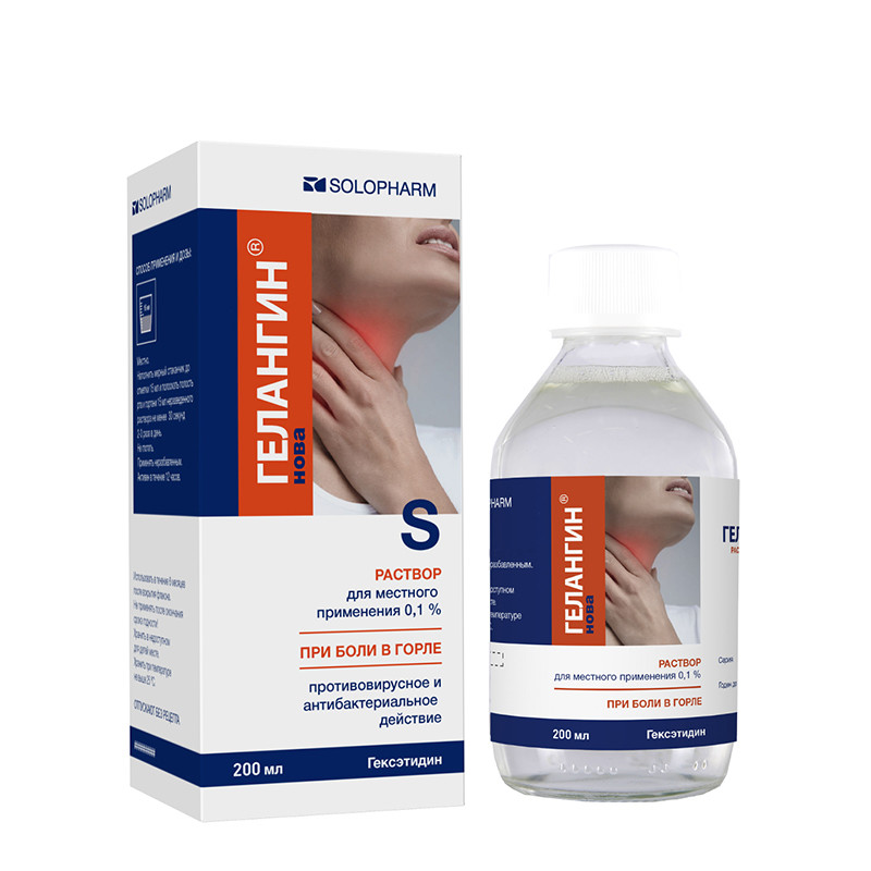 Лекарственный препарат Гелангин® нова, раствор для местного применения, можно применять для