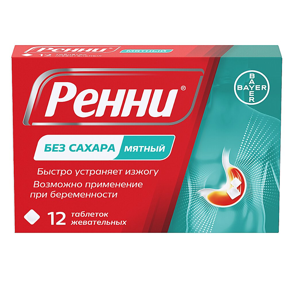 1 таблетка Ренни® без сахара содержит 400 мг сорбитола и сахарин и может применяться пациентами, страдающими диабетом.