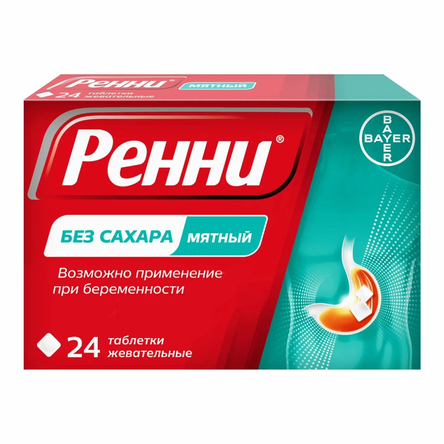 1 таблетка Ренни® без сахара содержит 400 мг сорбитола и сахарин и может применяться пациентами, страдающими диабетом.