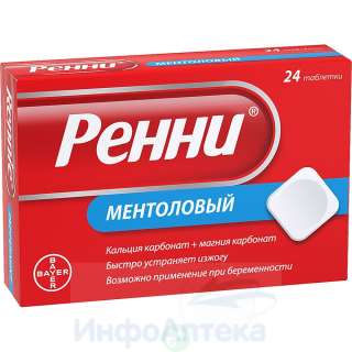 1 таблетка Ренни® без сахара содержит 400 мг сорбитола и сахарин и может применяться пациентами, страдающими диабетом.