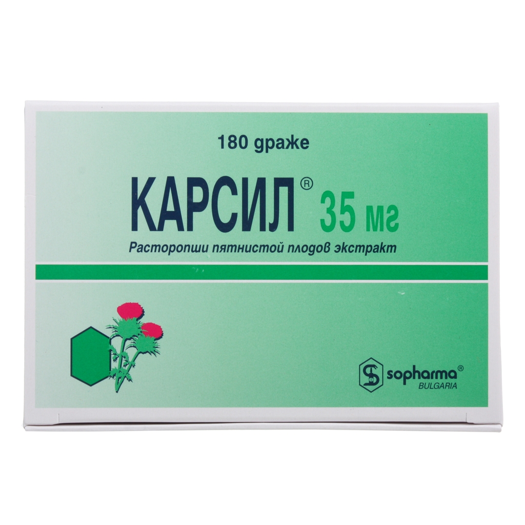 1 драже - сухой экстракт плодов расторопши пятнистой (эквивалент силимарина) 35 мг