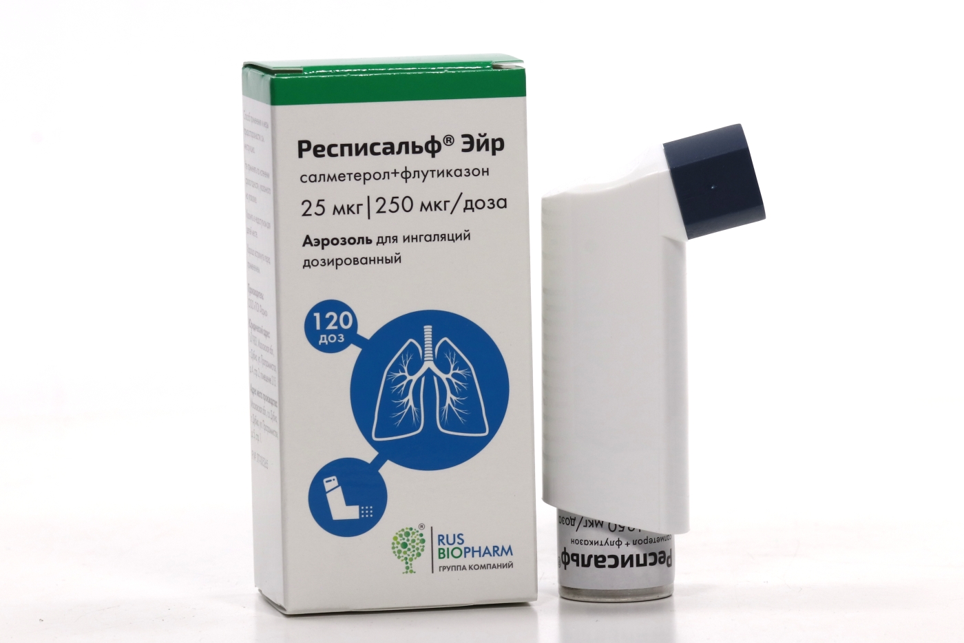 Препарат Респисальф Эйр предназначен для регулярного лечения бронхиальной астмы, если показана комбинированная терапия ?2-адреномиметиком длительного действия и ингаляционным глюкокортикостероидом: