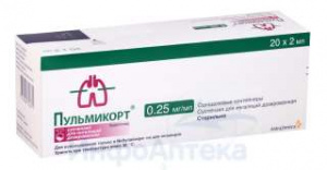- Пульмикорт® суспензию смешивают с 0,9 % раствором натрия хлорида или с растворами тербуталина, сальбутамола, фенотерола, ацетилцистеина, натрия кромогликата и ипратропиума бромида; разбавленную суспензию следует использовать в течение 30 мин;
