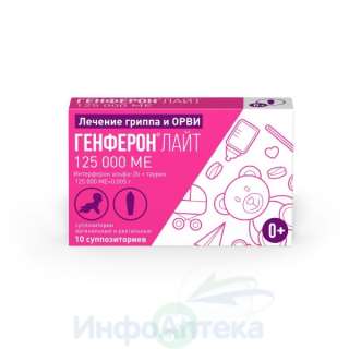 ПередозировкаПрепарат может применяться как вагинально, так и ректально. Способ введения, доза и длительность курса зависят от возраста и конкретной клинической ситуации. У взрослых и детей старше 7 лет Генферон® Лайт применяют в дозе 250000 МЕ интерферона альфа‑2b на суппозиторий. У детей до 7 лет, включая детей грудного возраста, безопасным является применение препарата в дозе 125000 МЕ интерферона альфа‑2b на суппозиторий. У женщин, находящихся на 13–40 неделе беременности, препарат применяется в дозе 250000 МЕ интерферона альфа‑2b на суппозиторий.